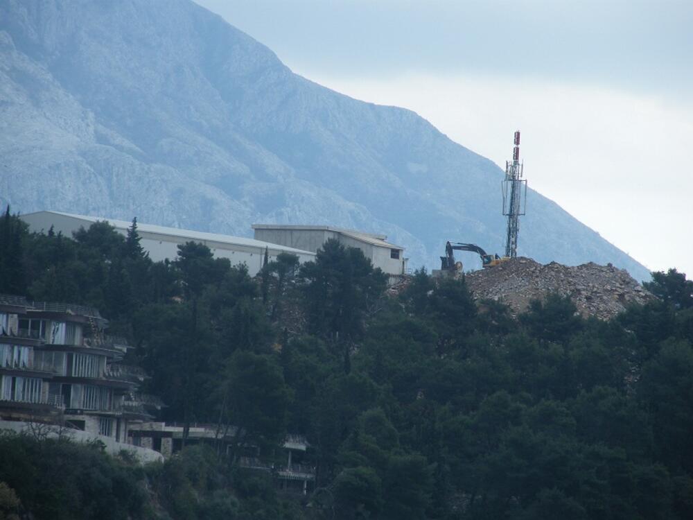 Nekada zeleno brdo, jedina oaza grada, na kojoj je u protekle tri godine, osim 40 vila koje je izgradio ruski „Miraks“, nikla i monumentalna dvanaestospratna građevina „Harmonija bilding“, sada je dodatno uništeno istovaranjem zemlje i kamenja od kojih se formiralo omanje brdo, visine nekoliko metara, koje se vidi iz svih djelova Budve.