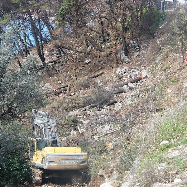 Kompanija “Monterra Montenegro”, glavni izvođač radova na Zavali, koja je prije dvadesetak dana započela saniranje pješačke staze, ujedno i izgradnju velike garaže, počela je usijecanje brda neposredno uz Jadransku magistralu ka moru.