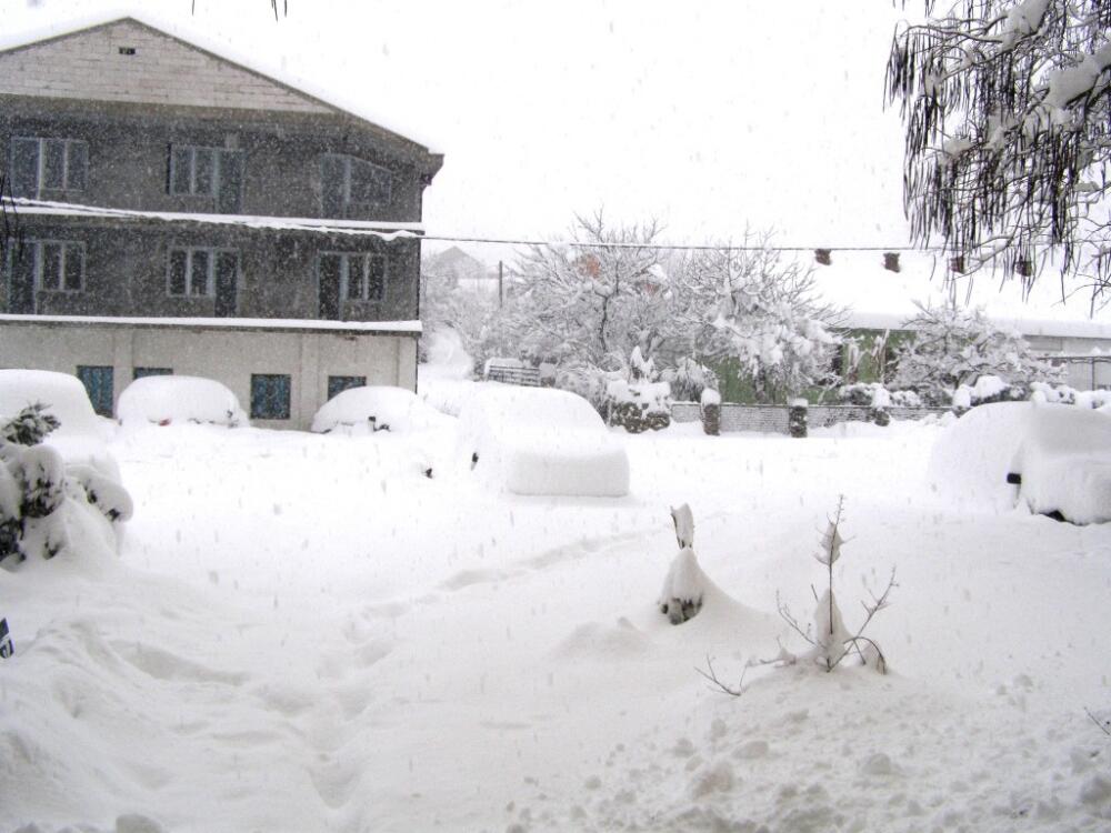 Krovovi na velikom broju kuća i tenda kafe bara "Obala" popustili su pod težinom snijega, a gotovo sva sela su odsječena.