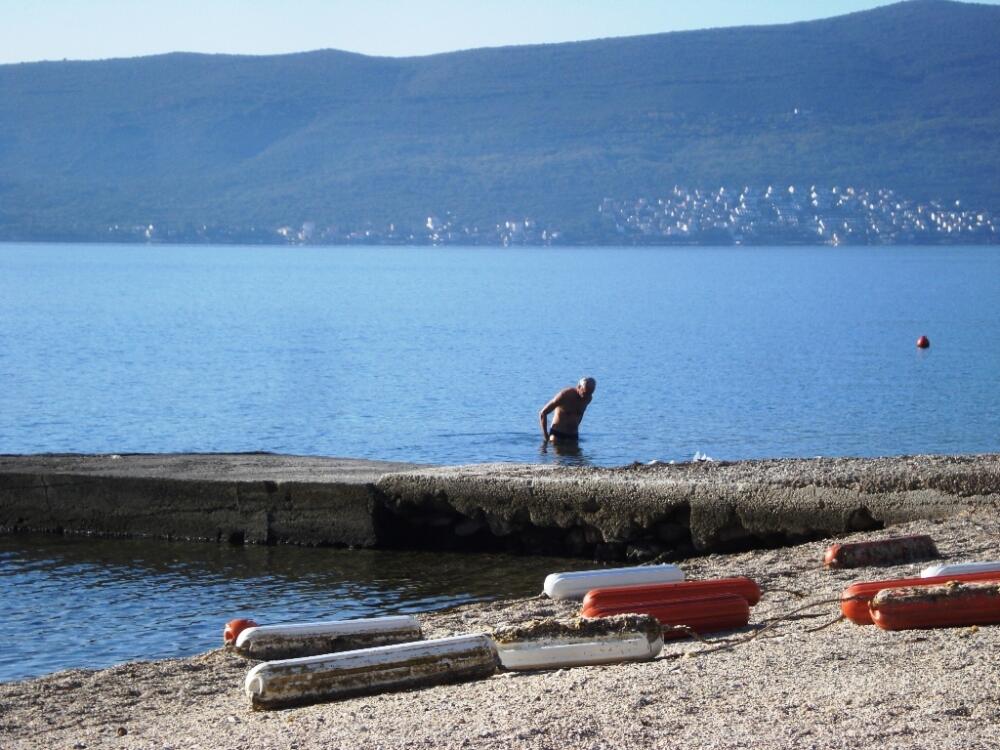 Da sezona kupanja u moru još nije završena potvrduje i fotografija snimljena jutros na plaži na rtu Seljanovo u Tivtu.