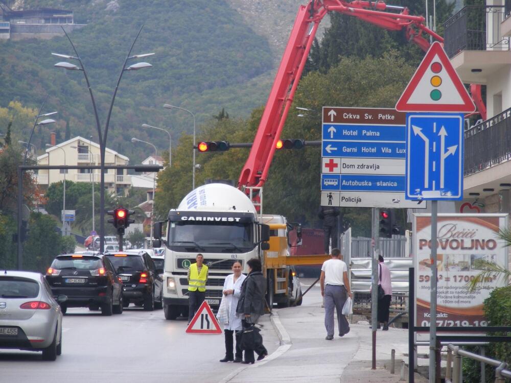 Gotovo da nema dana da jedna od traka najprometnijih budvanskih ulica i bulevara nije blokirana kamionima, betonjerkama, dizalicama.