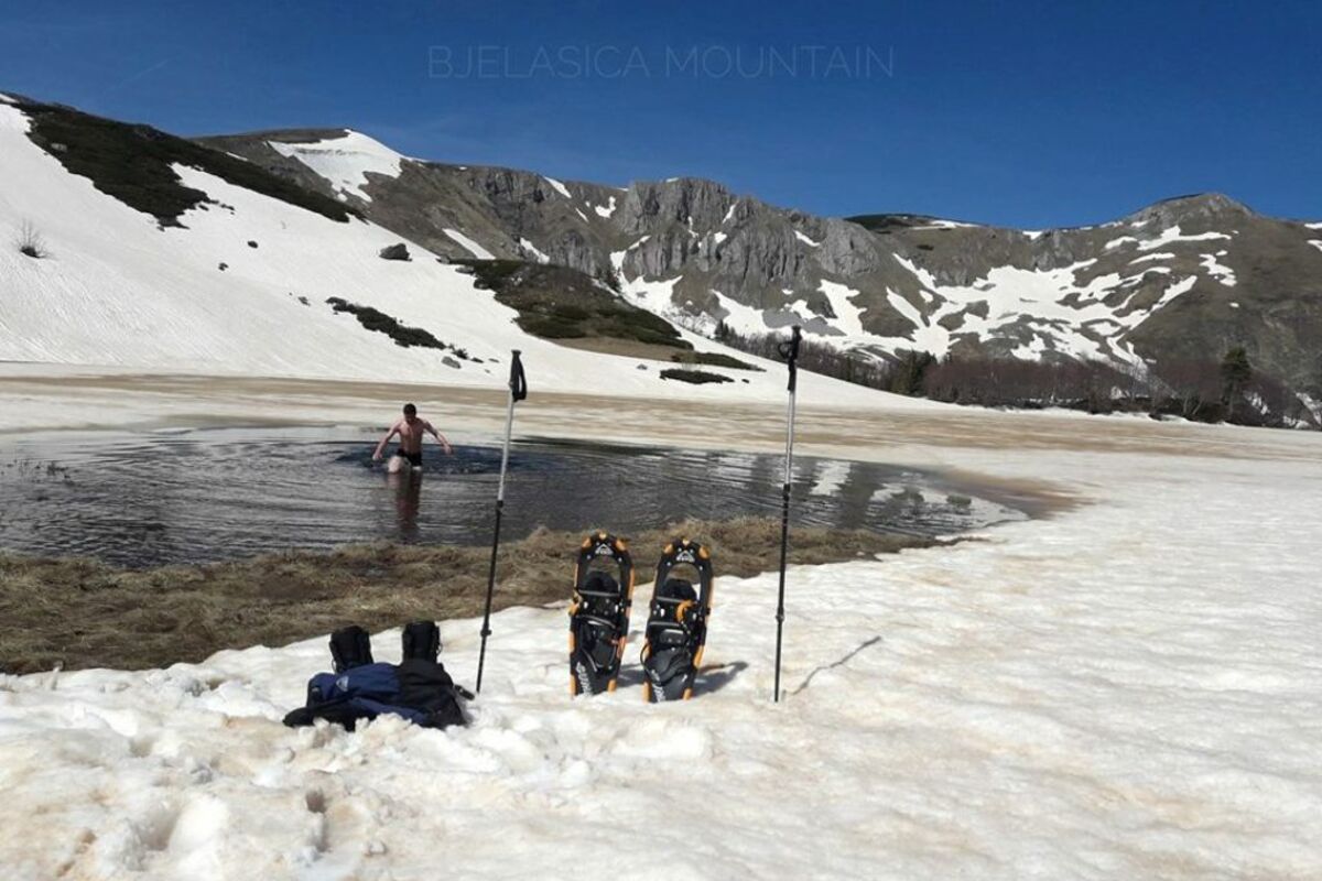 Mirko Šćepanović, sugrađanima poznat po Fejsbuk i Instagram profilu Bjelasica mountain, ovoh dana promovisao je tu planinu na originalna način. Jednu od svojih tura na krpljama završio je tako što se okupao u Pešića jezeru, koje je na oko 1.800 metara nadmorske visine. Procjenjuje da je temperatura vode bila oko 5 stepeni Celzijusa, a u jezero je, kaže, bilo teško ući zbog leda.
