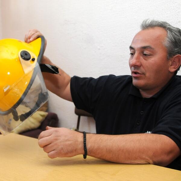On kaže da je otišao kod vatrogasaca da provjeri o čemu se radi i izvršio smotru, demonstrirajući ekipi "Vijesti" na koji način je bacio šljem vatrogascu, provjeravao kako mu je zakopčana jakna i vezane pertle.