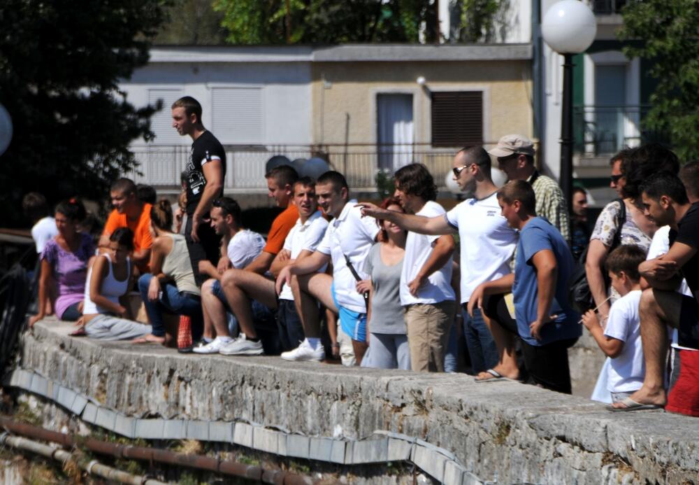 Dok su čekali da sa Vranjine krenu takmičari, koji su se prijavili za trku čunovima, Joličić je pričao o svom preplivavanju jezera i prepričavao anegdote.