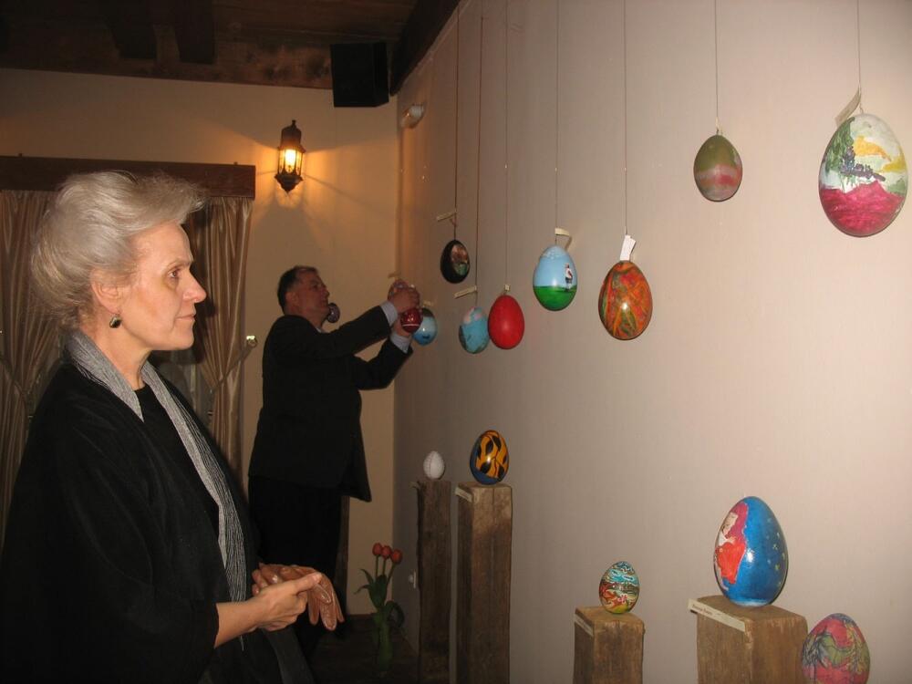"Jaja su radili umjetnici, njih oko 50, iz Crne Gore i Hercegovine, i manji broj djece. Ukupno je izloženo 60 jaja, a njihova cijena se kreće od 20 do 70 eura“ kazao je upravnik gostione Tadija Nikčević.
