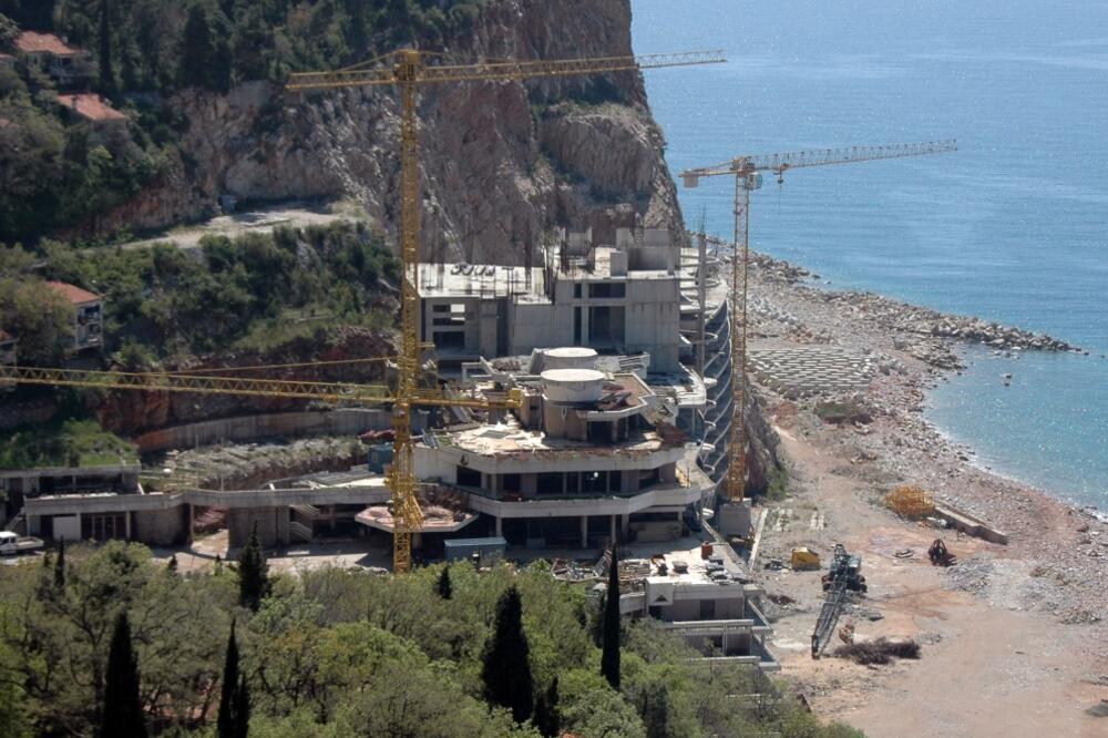 Nema nikoga , ništa se ne radi na ovom hotelu, kako li se zvaše, "As",valjda tako. Ovo ovako stoji već dvije godine, stalno prođem, kroz ovaj tunel i sa plaže u Perazića dolu uzmem neki kamen, jer nešto gradim kod mene kući u Petrovcu.