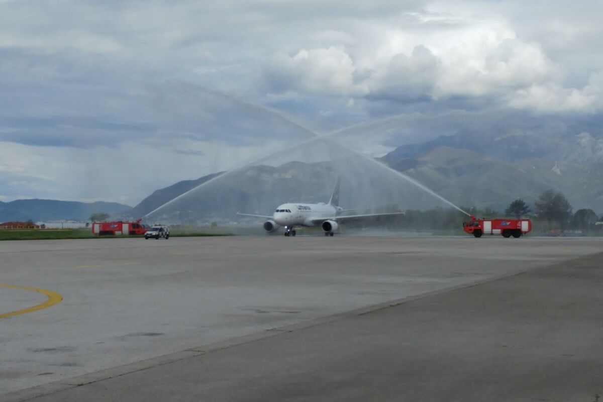 Prvi Lufthansin avion koji je ikada sletio na tivatski aerodrom svečano je dočekan, uz tradicionalni pozdrav vodenim topovima sa vatrogasnih vozila aerodrome Tivat. Putnike i posadu Airbusa A-319 njemačke nacionalne aviokompanije dočekali su i pozdravili direktor Aerodroma Crne Gore Danilo Orlandić sa saradnicima, njemački ambasador u Crnoj Gori Robert Veber, viši direktor prodaje Lufthanse za centralnu i jugoistocnu Evropu Peter Pulem, potpredsjednik Opštine Tivat Dejan Maslovar i direktor Aerodroma Tivat Rade Marić. Šezdesetak putnika iz Minhena dočelaki su i predstavnici Turistike organizacije Tivat i folkoraši KUD-a “Boka” u narodnim nošnjama, koji su im poželjeli dobrodošlicu uz prigodno posluženje.