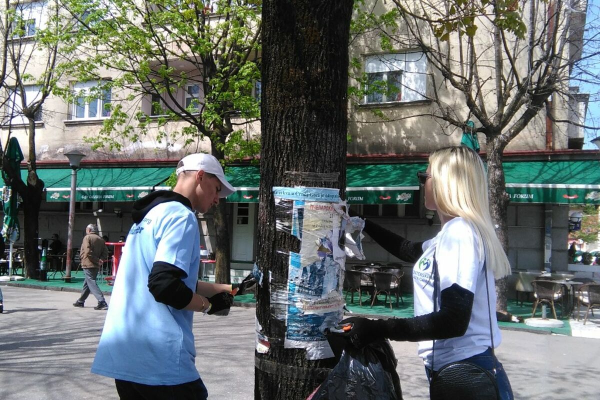 Volonteri nevladine organizacije (NVO) „Alfa centar“ iz Nikšića obilježili su 22.april, Dan planete zemlje, uklanjanjem plakata i reklamnih materijala sa stabala i stubova za rasvjetu iz centra grada, kao i uređenjem ulaza na teritoriju opštine Nikšić i postavljanjem bilborda dobrodošlice. Akcija uklanjanja plakata je dio dogovora između Komunalne policije i dijela NVO sa ciljem da se nakon njene realizacije počne sa neselektivnom primjenom Odluke o zabrani reklamiranja i plakatiranja na javnim površinama.