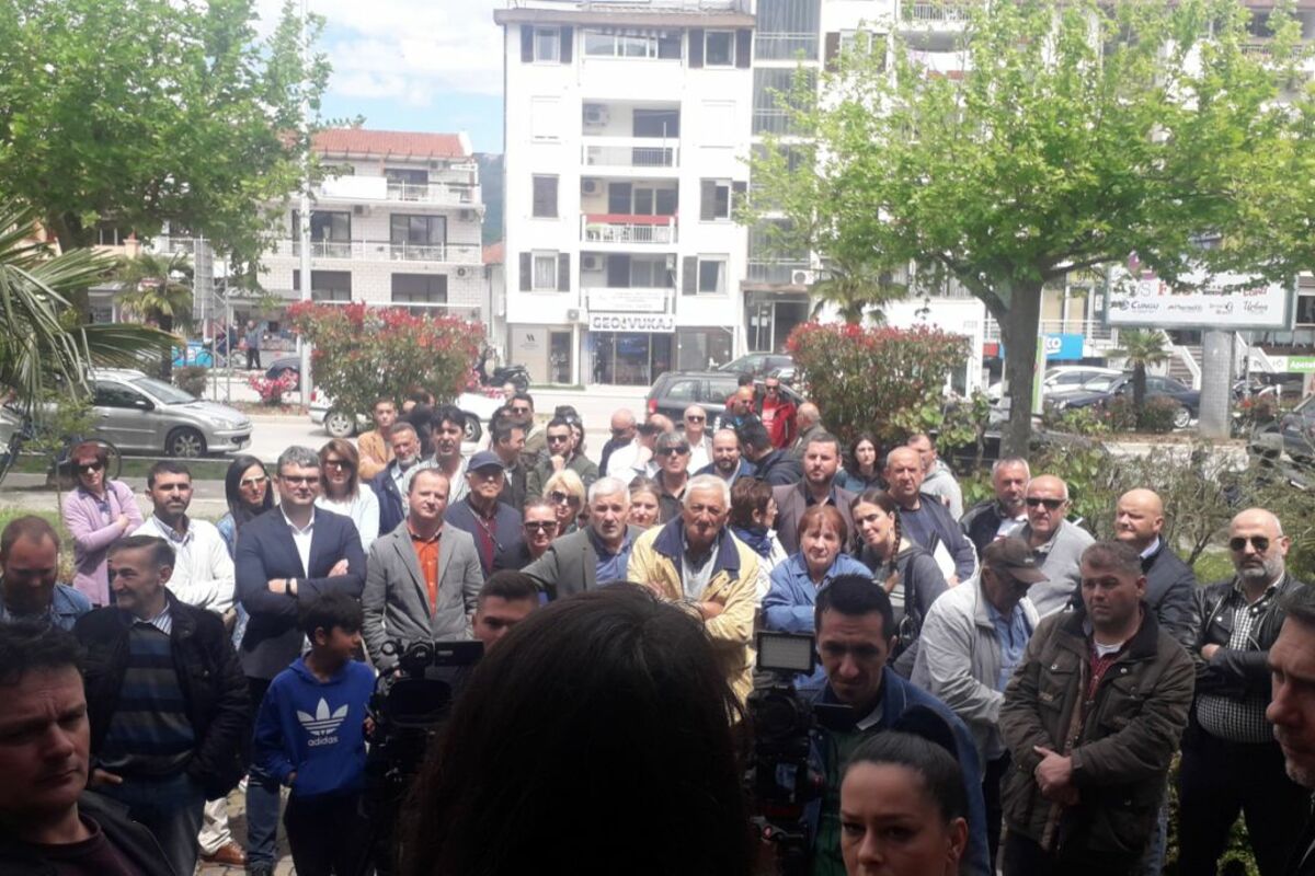 Ispred zgrade Opštine Ulcinj, danas je održan protest povodom ekspanzije divlje gradnje u zoni Borove šume, ulcinjskom maslinjaku, Port Mileni, Velikoj plaži i rijeci Bojani.