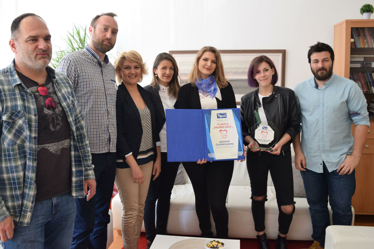 Plaketa "Hrabro srce", koju Televizija "Vijesti" dodjeljuje od prošle godine, danas je za human podvig uručena barskim čempresarima.