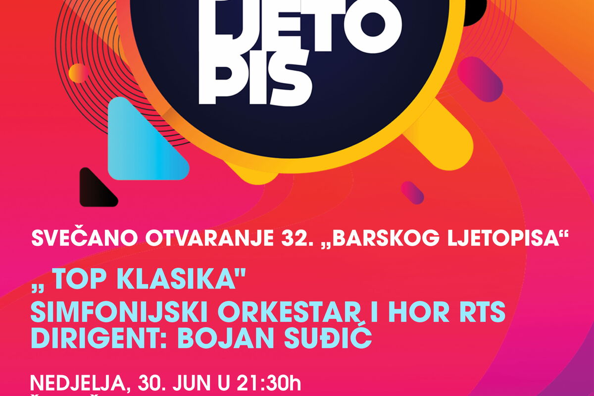 Večeras u 21:30 na na Šetalištu kralja Nikole, kod gradske marine, biće svečano otvoren XXXII Barski ljetopis. Na otvaranju uglednog barskog festivala nastupaju Simfonijski orkestar i Hor RTS pode vođstvom maestra Bojana Suđića, koji spada u najistaknutije dirigente današnjice u regionu.