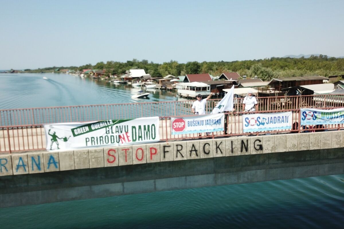 Nakon što su na mostu preko Bojane raširili transparente i ostavili poruke "Stop fracking" i "Stop bušenju Jadrana" eko aktivisti su turistima u Surf kite klubu Loop ispričali šta sa svojim prirodnim bogatstvom čini prva i jedina ekološka država na svijetu - Crna Gora.