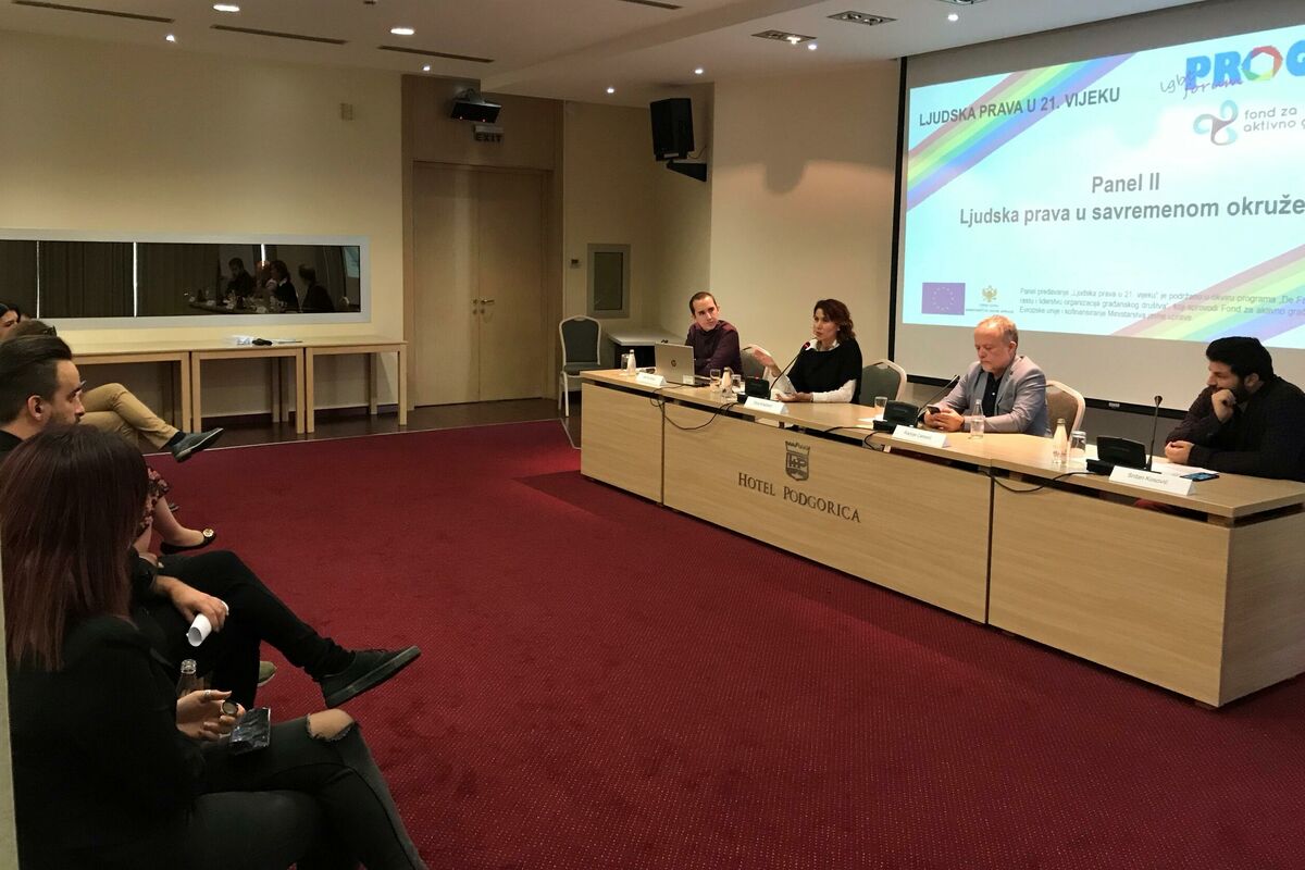 U hotelu Podgorica danas je održano panel predavanje pod nazivom „Ljudska prava u 21. vijeku“, koje je nevladina organizacija LGBT Forum Progres organizovala u sklopu projekta podržanog u okviru programa „De Facto razvoj: podrška rastu i liderstvu organizacija građanskog društva“, koji sprovodi Fond za aktivno građanstvo, uz podršku Evropske unije i kofinansiranje Ministarstva javne uprave.