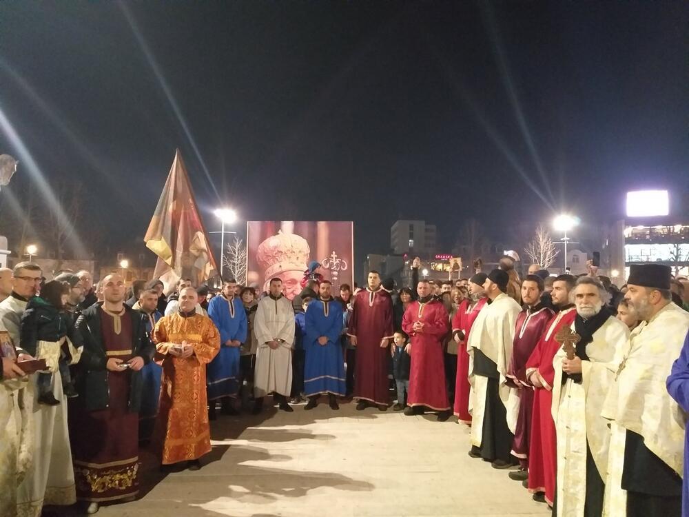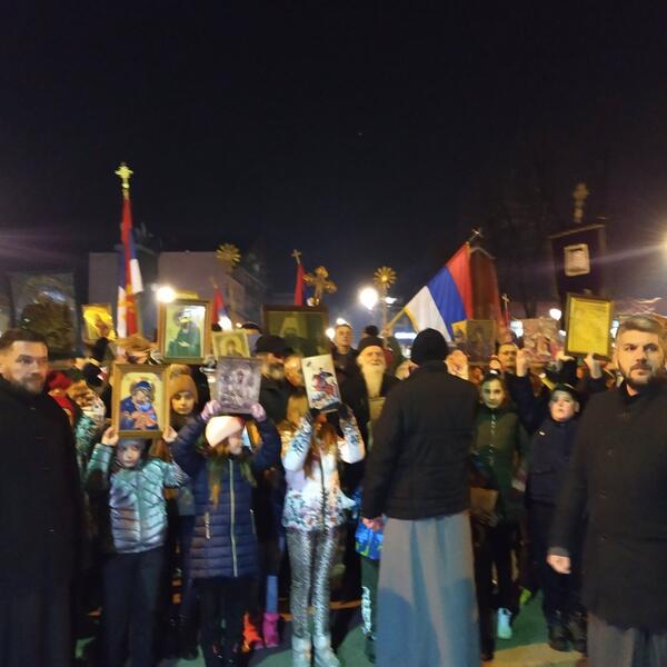 Oni su se nakon molebana ispred crkve svetih apostola Petra i Pavla uputili u kolonu predvođenu sveštentvom prema crkvi svetog Nikole u Nikoljcu.