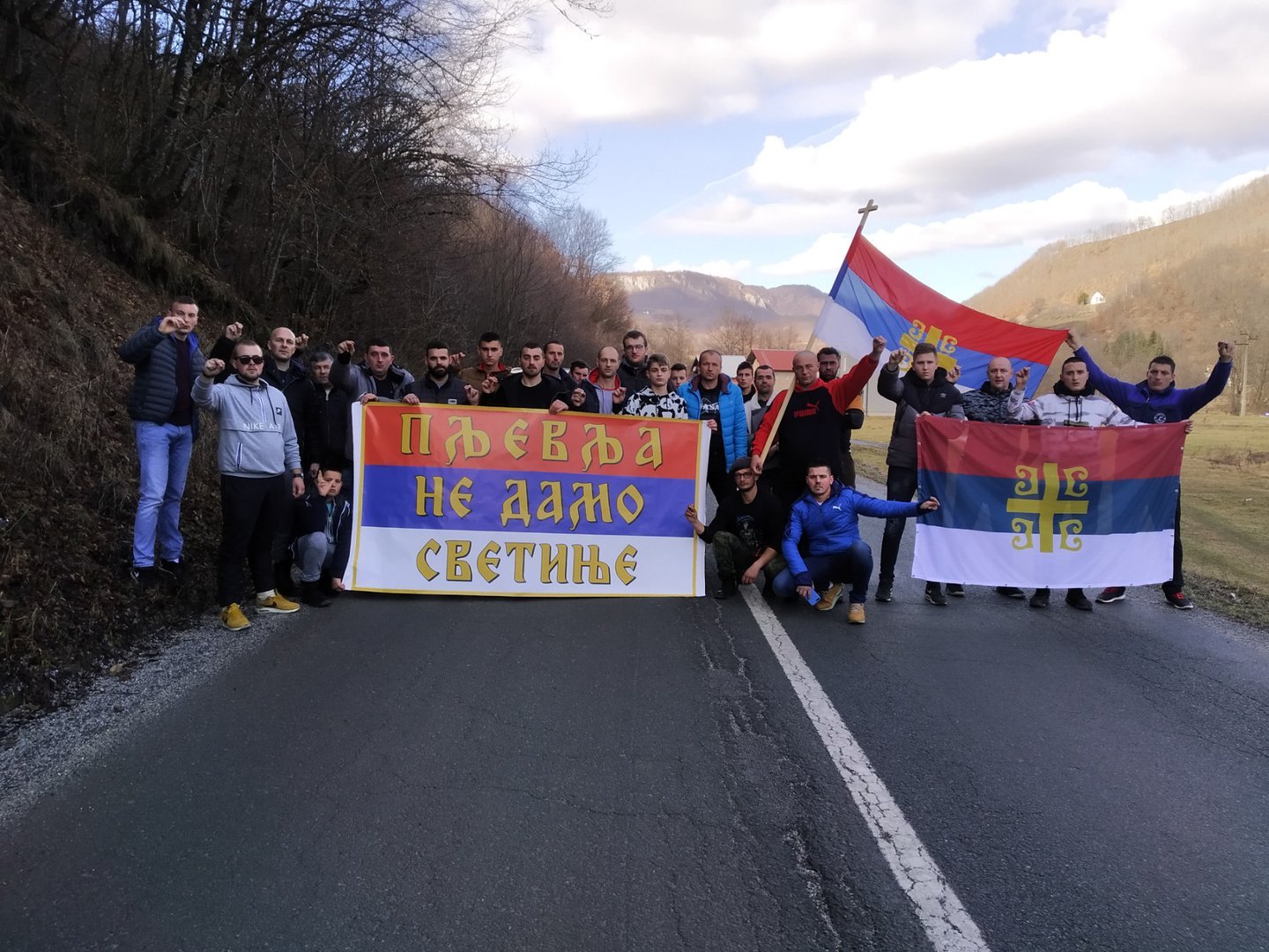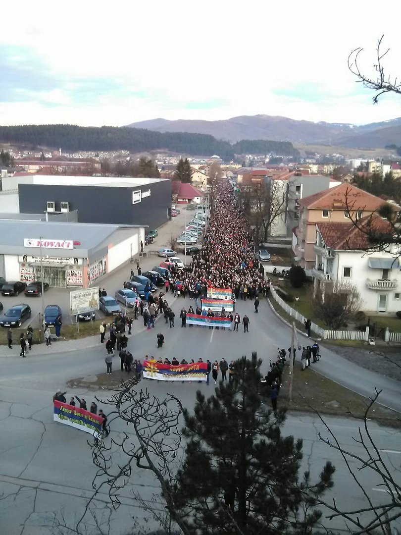 Na raskrsnici kod zgrade Opštine student šeste godine Medicinskog fakulteta Božo Knežević, pročitao je saopštenje Pljevaljskog odbora za odbranu svetinja.
