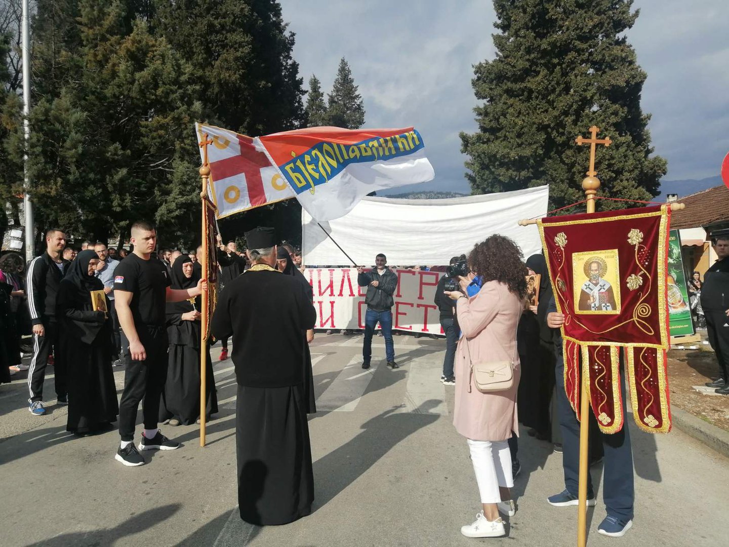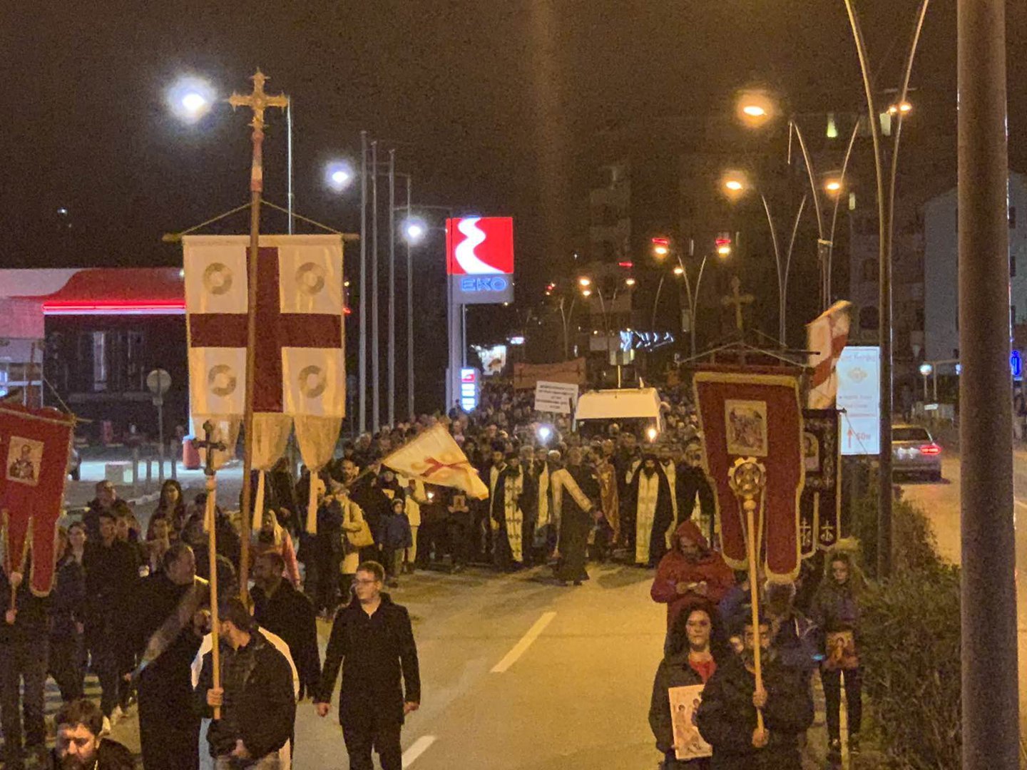 Nakon bogosluženja litija je prošla ulicma grada iskazujući svoj protest zbog usvajanja Zakona o slobodi vjeroispovjesti.