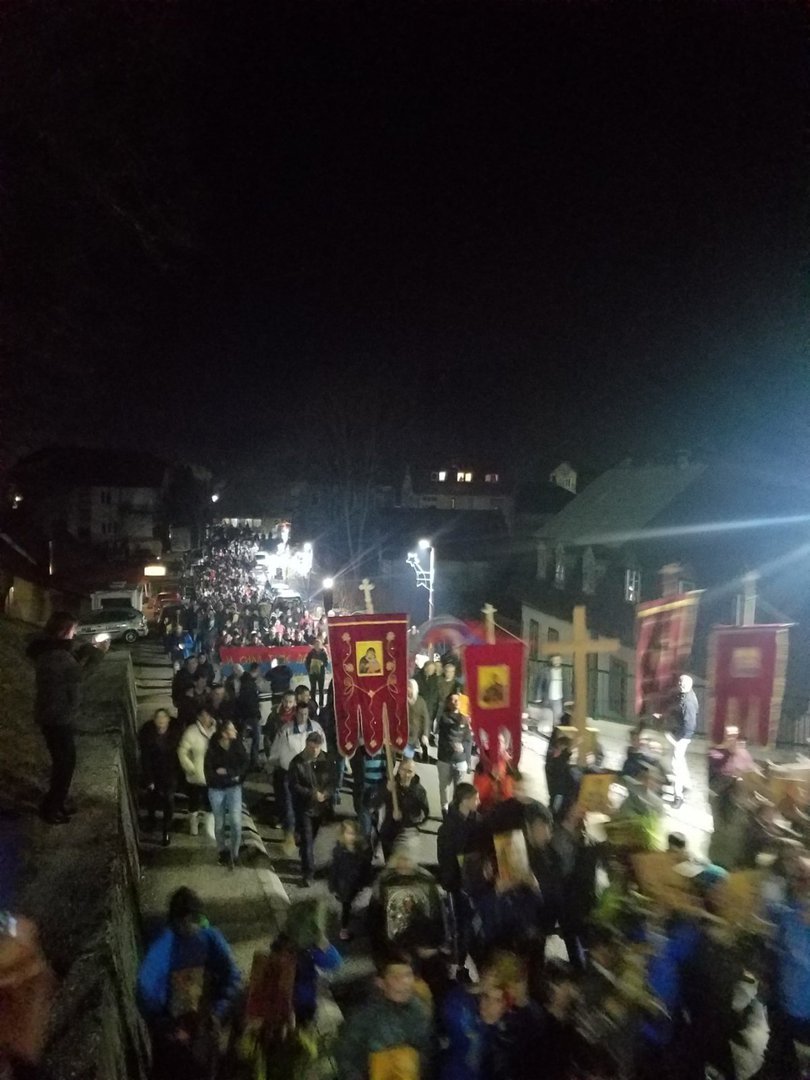 Na ulazu u Pljevlja iz pravca Prijepolja sačekao ih je veliki broj građana, koji se pridružio krsnom hodu do crkve svete Petke gdje je služen moleban.
