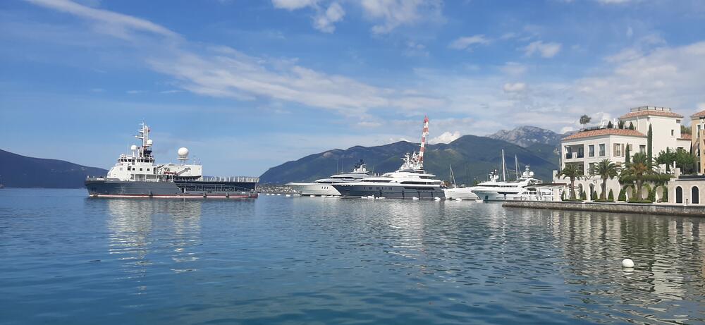 Brodovi, naročito veće jahte, svakodnevno uplovljavaju i isplovljavaju iz Porto Montegra, a danas su, na mulo 1 pristala 73 metra duga super jahta "Clio" ruskog oligarha Olega Deripaske i njen tzv. shadow boat (prateći brod), 60 metara dug "Sputnik".