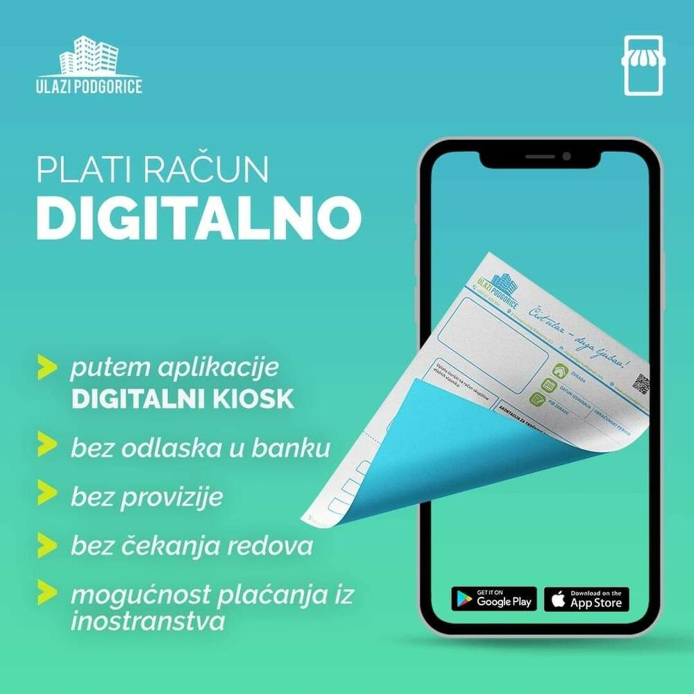 Prateći potrebe naših korisnika izvršili smo niz poboljšanja i uveli nove usluge. Oko sedam hiljada korisnika usluga održavanja ulaza i zgrada naših partnera - Ulazi Podgorice koji imaju svoje podružnice u Baru, Budvi, Herceg Novom i Kolašinu, od skoro mogu platiti mjesečne račune mobilnom aplikacijom Digitalni kiosk. Plaćanje je vrlo jednostavno, skeniranjem QR koda .