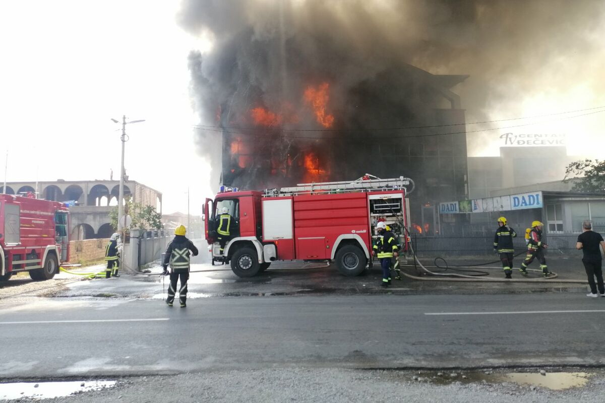 "Na lice mjesta upućeno je jedno vozilo sa posadom, koja je po dolasku zatekla pomoćni objekat robne kuće “Dadi” u plamenu. Trenutno je u akciji gašenja požara mobilisano osam vozila sa 25 vatrogasaca. Akciju gašenja otežava velika zadimljenost zbog koje je dvojici pripadnika Službe ukazana hitna medicinska pomoć. Pripadnici Službe zaštite i spašavanja ulažu maksimalne napore kako bi se spriječilo širenje požara koji prijeti da ugrozi čitav objekat robne kuće", naveli su ranije iz Službe zaštite i spašavanja Glavnog grada Podgorica.