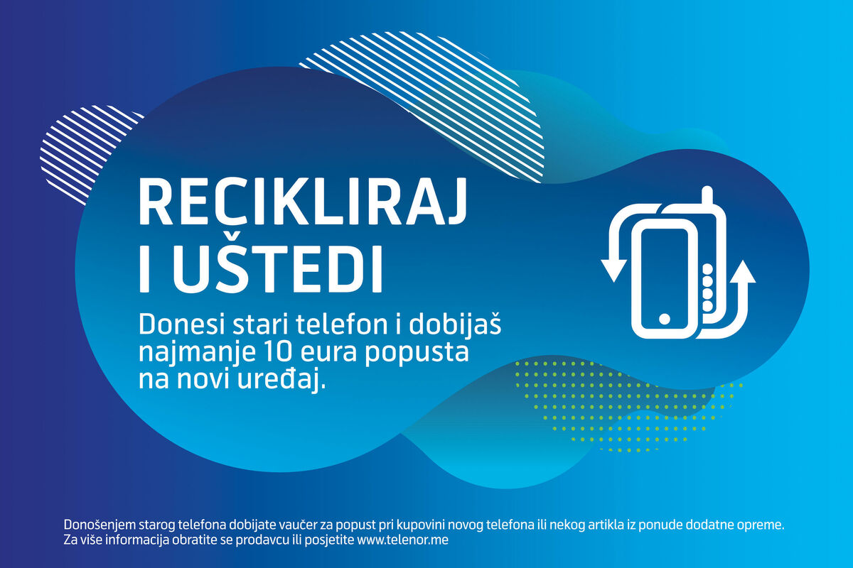 Počev od 01.10.2020. Telenor omogućava reciklažu starih telefona svim korisnicima, bez obzira na to koju mrežu koriste, kao i popust prilikom zamjene starog telefona za novi. U okviru strategije društveno-odgovornog poslovanja kompanija Telenor nastavlja sa brojnim inicijativama koje za cilj imaju zaštitu životne sredine i obezbjeđivanje najboljeg korisničkog iskustva, a korisnicima pomaže da uređaj koji više ne koriste odlože na bezbjedan i ekološki prihvatljiv način.