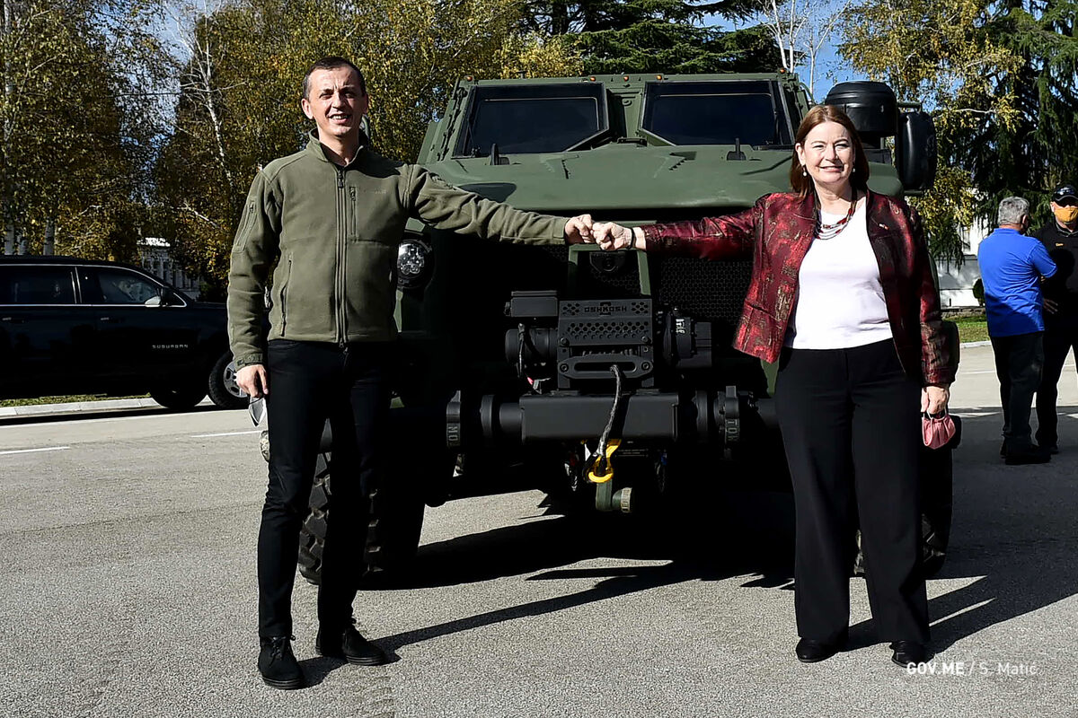Ministar odbrane Predrag Bošković sa ambasadorkom Sjedinjenih Američkih Država u Crnoj Gori Džudi Rajzing Rajnke i načelnikom Generalštaba Vojske Crne Gore, general majorom Dragutinom Dakićem prisustvovao predstavljanju novih lakooklopnih vozila Oshkosh.