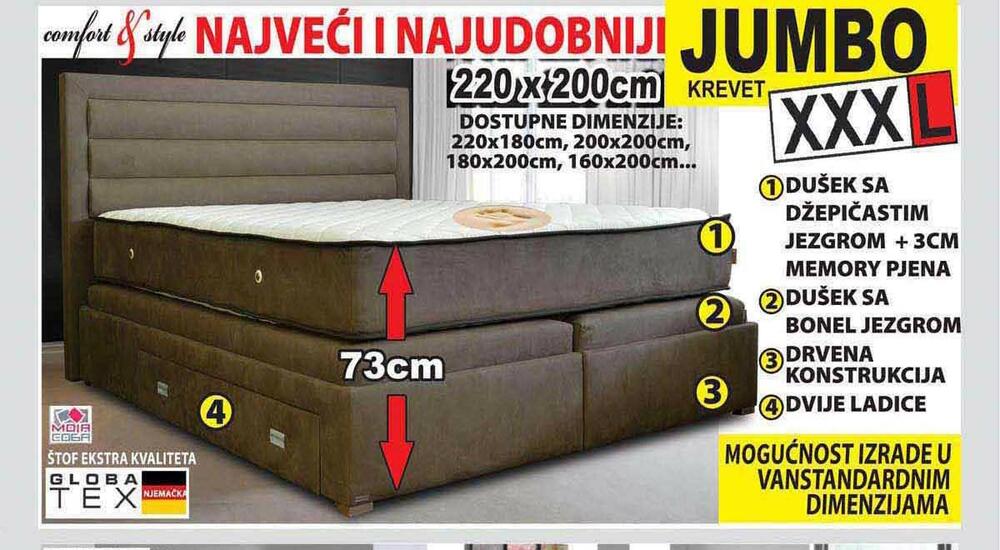 Poseban HIT su JUMBO KREVETI - najveći i najudobniji u vanstandardnim dimenzijama.