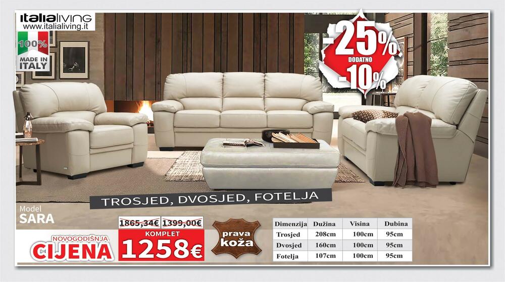 Pored navedenog na NOVOGODIŠNJEM SNIŽENJU u ponudi NAMOSA su preko 80 modela kožnih garnitura u raznim bojama, opcijama kao i sa električnim relax mehanizmima, garniture u štofu, spavaće sobe, veliki izbor komadnog namještaja.