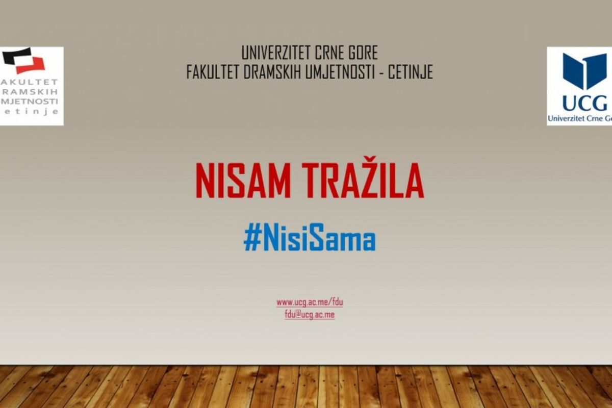 Fakultet dramskih umjetnosti na Cetinju, Univerziteta Crne Gore (UCG), pridružuje se regionalnoj inicijativi #Nisisama, usmjerenoj prema sprečavanju i prevenciji nasilja, zlostavljanja, seksualnog uznemiravanja i zloupotrebe u nastavnim procesima i najoštrije osuđuje svaki drugi oblik uznemiravnja u okivru naše akademske, institucionalne i šire društvene zajednice, saopšteno je sa Fakulteta dramskih umjetnosti - Cetinje.
