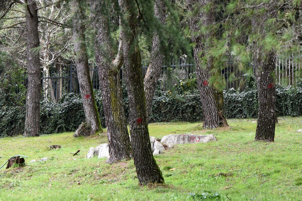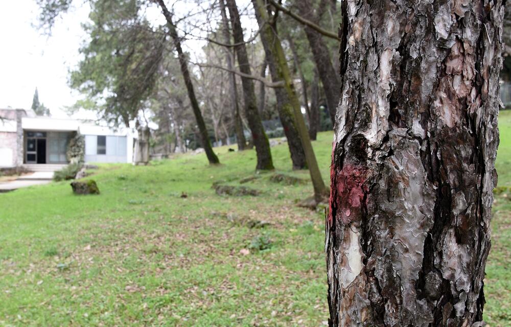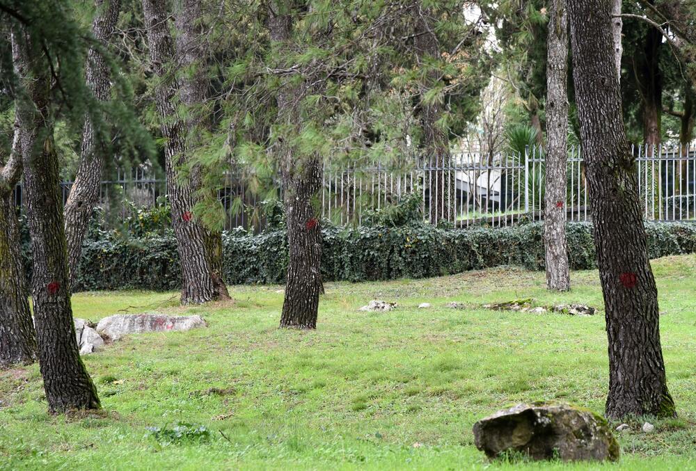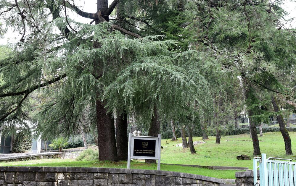 Najmanje osam stabala četinara u dvorištu Crnogorske akademije nauka i umjetnosti (CANU) označeno je, ali iz te institucije i Uprave za javne radove nisu odgovorili šta se namjerava sa drvećem i da li će eventualno zbog građevinskih radova biti posječena. Iz CANU su redakciju uputili na Upravu javnih radova.