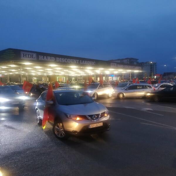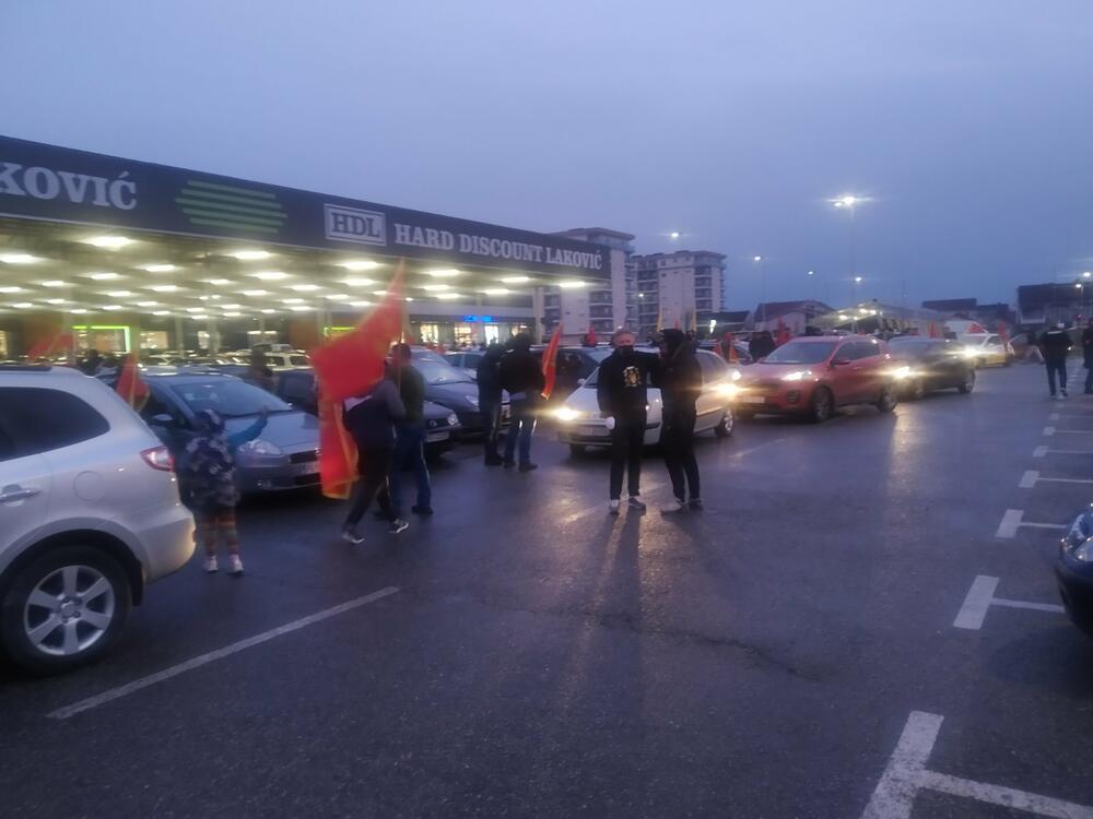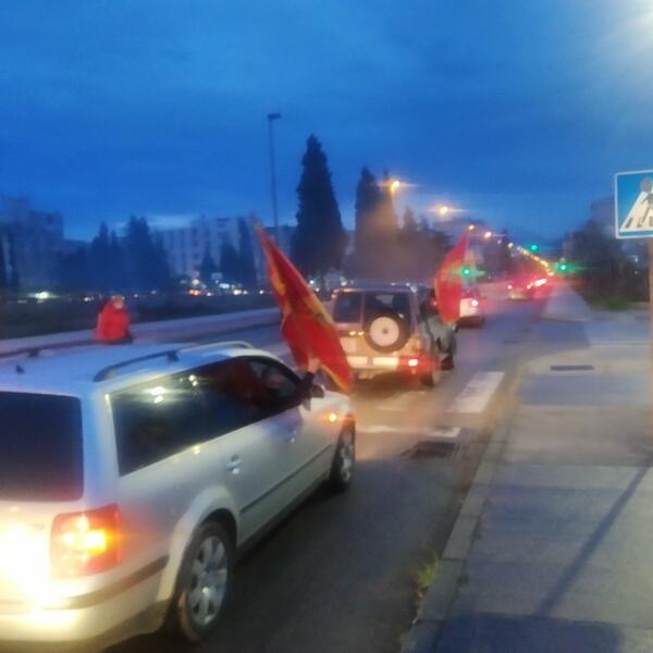 Grupa građana sa državnim obilježjima je, uz par zapaljenih baklji, oko 18 časova krenula u auto-kolonu ulicama Podgorice. U koloni je veliki broj vozila.
