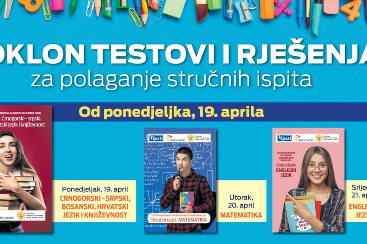 Svim učenicima završnih razreda gimnazija i srednjih stručnih škola Vijesti, u saradnji sa Ministarstvom prosvjete, nauke, kulture i sporta i Ispitnim centrom, poklanjaju uzorke testova sa rješenjima.