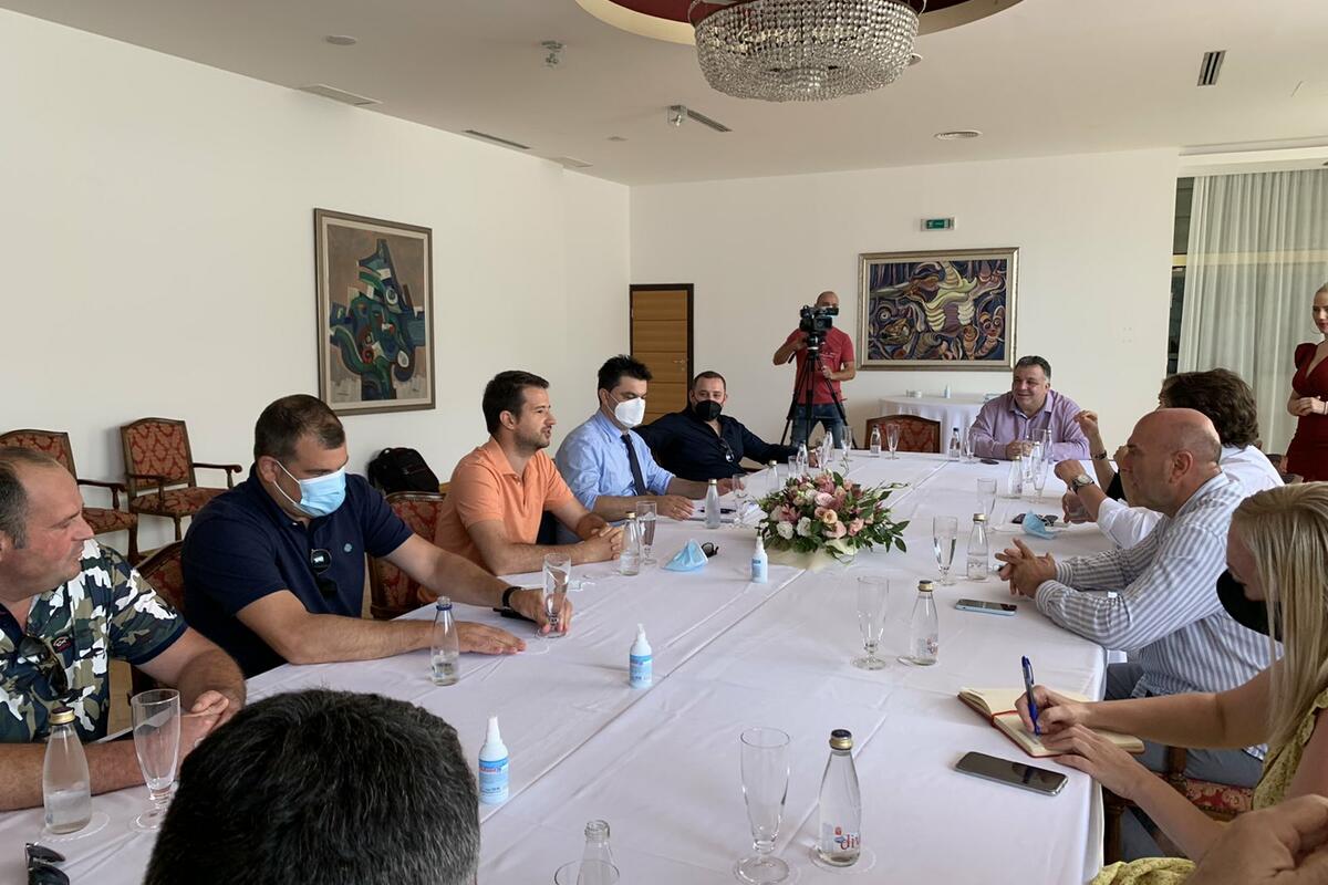 Ministar ekonomskog razvoja Jakov Milatović i direktor Instituta za javno zdravlje Igor Galić sastali su se u Petrovcu sa budvanskim ugostiteljima povodom njihovog protesta zbog uvođenja novih epidemioloških mjera u cilju sprječavanja širenja koronavirusa.