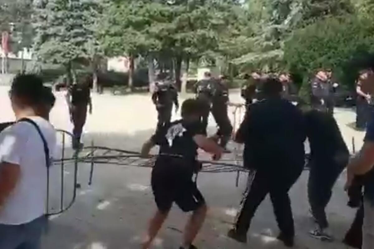 Iz Uprave policije "Vijestima" je rečeno da je grupa građana pokušala da prođe kroz zaštitnu odgradu postavljenu ispred Cetinjskog manastira.