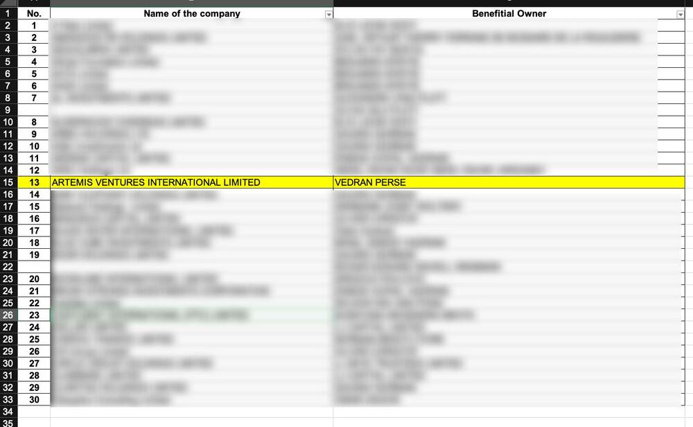 Dokumenta iz “Pandora papira” pokazuju da je pravi vlasnik kompanije Artemis britanski državljanin hrvatskog porijekla, Vedran Perše, dok je krajni vlasnik firme Laymarsh Jasminko Umićević.