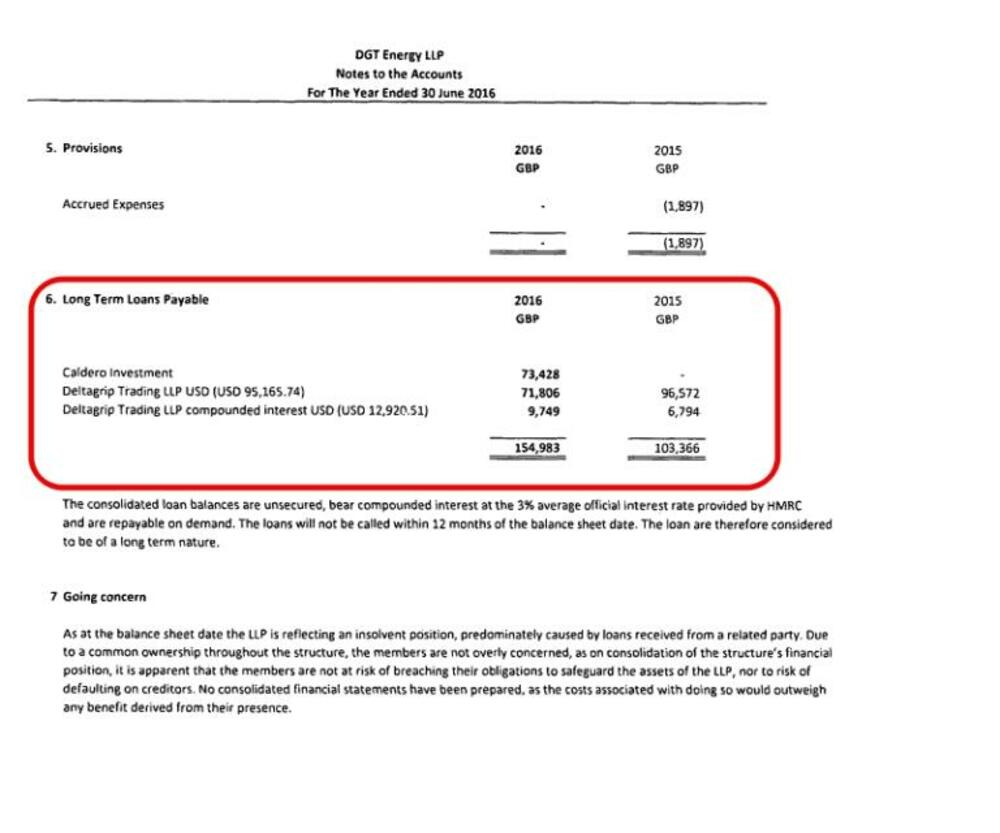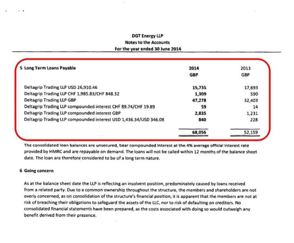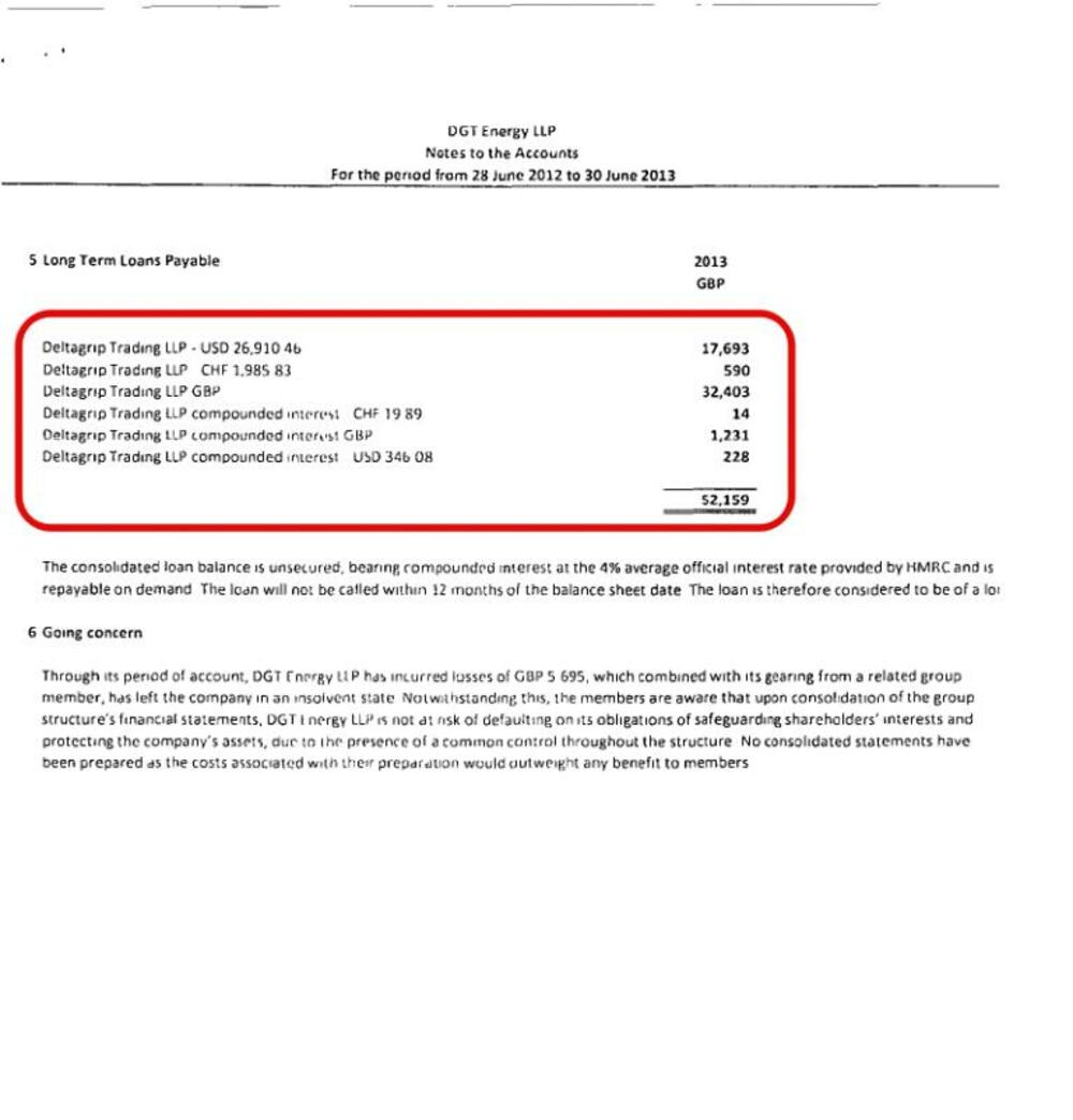Već u toku prve godine, DGT Energy pozajmljuje oko 52 hiljade funti od Deltagripa, u različitim valutama, američkim dolarima, funtama i švajcarskim francima, sa prosječnom kamatnom stopom od 4%.
