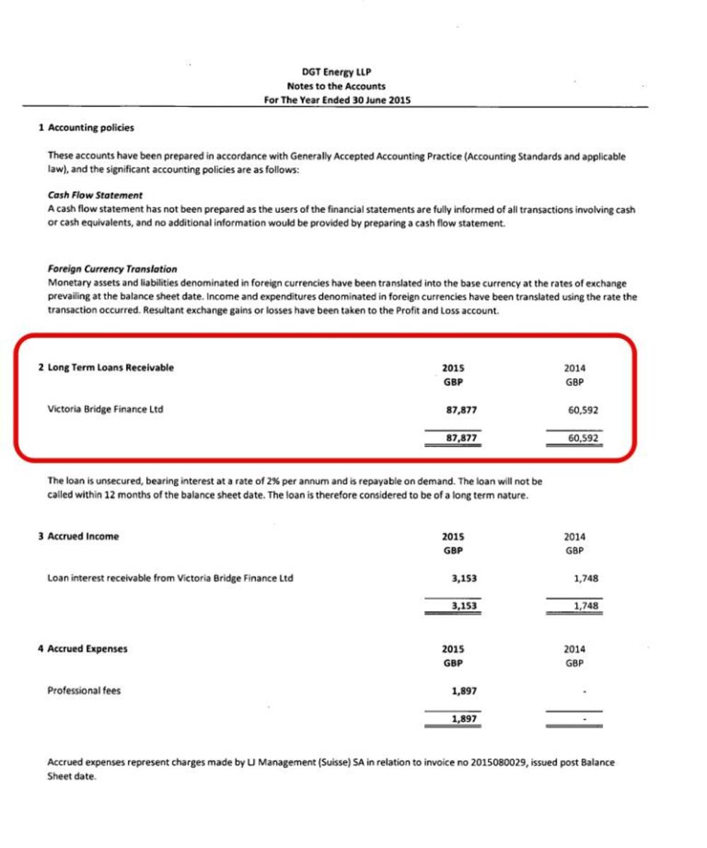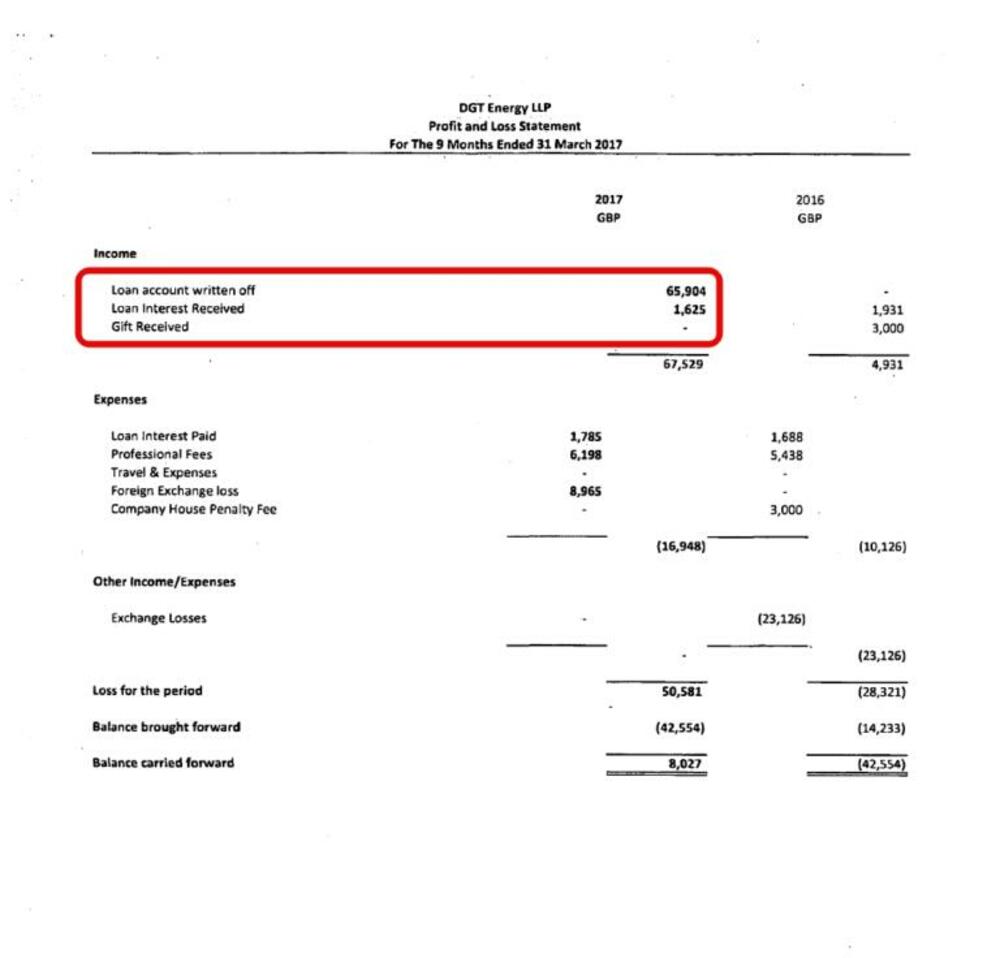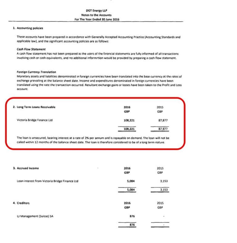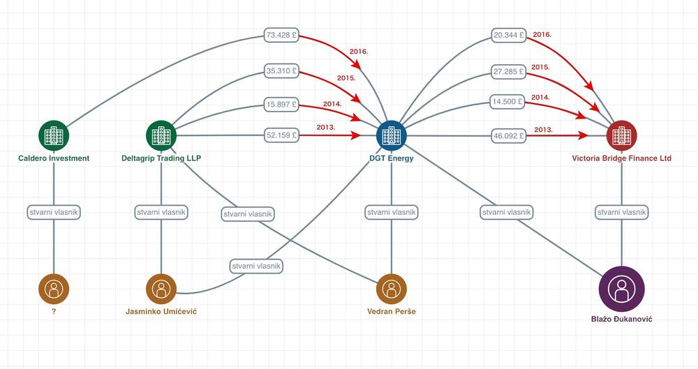 Iste te godine, 46 hiljada funti DGT Energy pozajmljuje svom osnivaču, Victoria Bridge Finance Ltd čiji skriveni vlasnik je Blažo Đukanović, po kamatnoj stopi od 2 %.