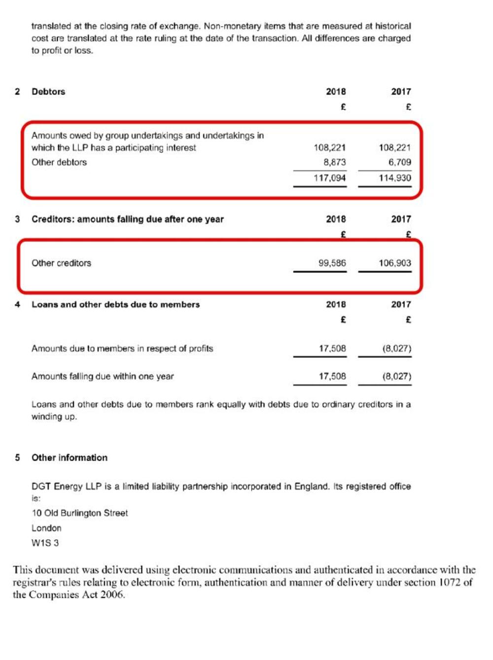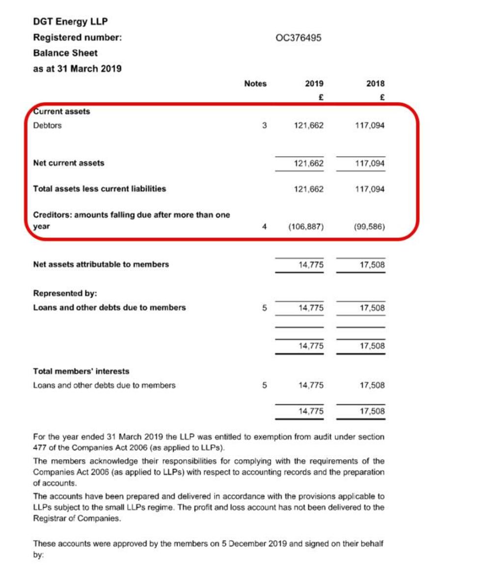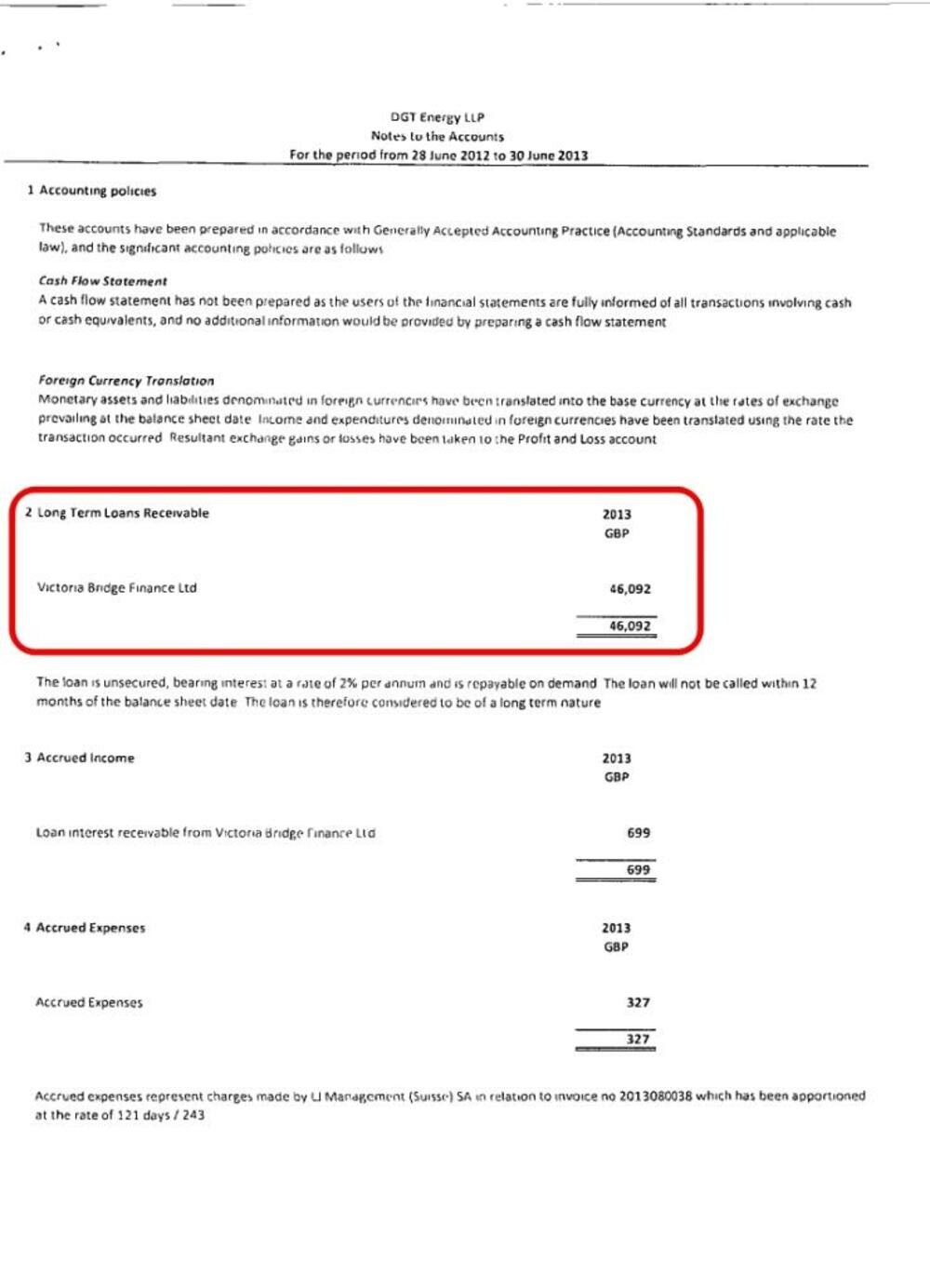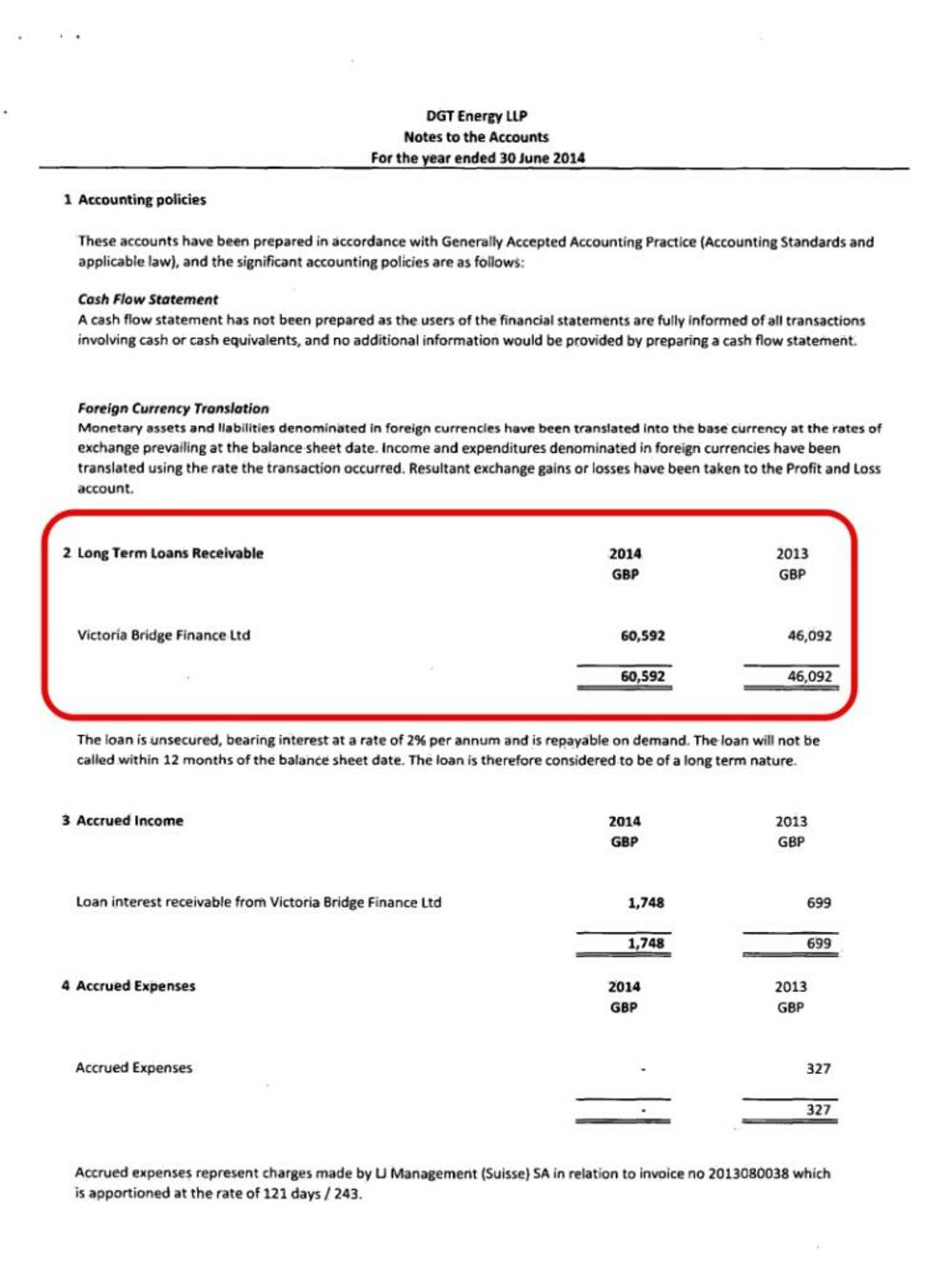 Iste te godine, 46 hiljada funti DGT Energy pozajmljuje svom osnivaču, Victoria Bridge Finance Ltd čiji skriveni vlasnik je Blažo Đukanović, po kamatnoj stopi od 2 %.