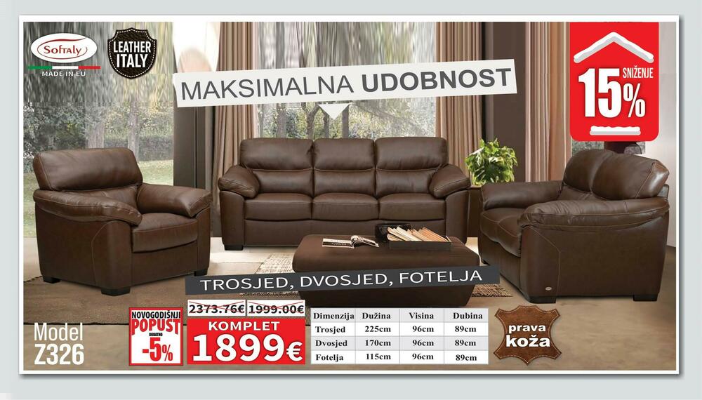 Pored navedenog na NOVOGODIŠNJEM SNIŽENJU u ponudi NAMOSA je preko 80modela dnevnih i kožnih garnitura u raznim bojama, opcijama kao i sa električnim relax mehanizmima, garniture u štofu, spavaće sobe, veliki izbor komadnog namještaja.