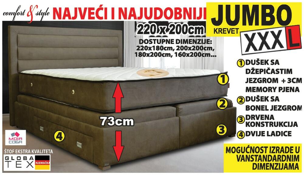 Poseban HIT su JUMBO KREVETI - najveći i najudobniji u vanstandardnim dimenzijama.