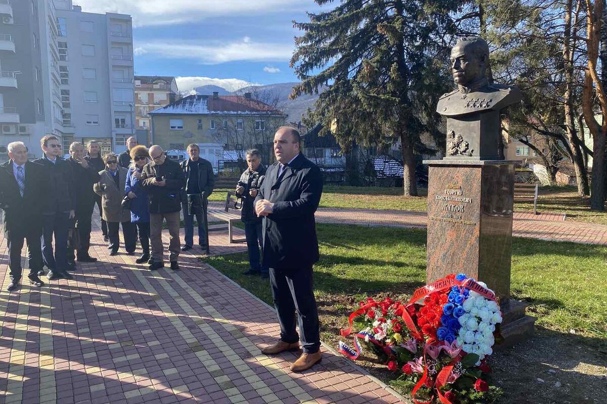 Potom su predsjednik opštine, predstavnici ambasade Rusije i i delegacija boračke organizacije položili vijence na spomenik ruskom maršalu, koji je otkriven prošle godine.