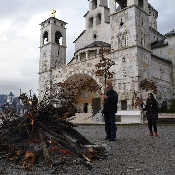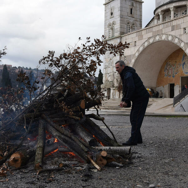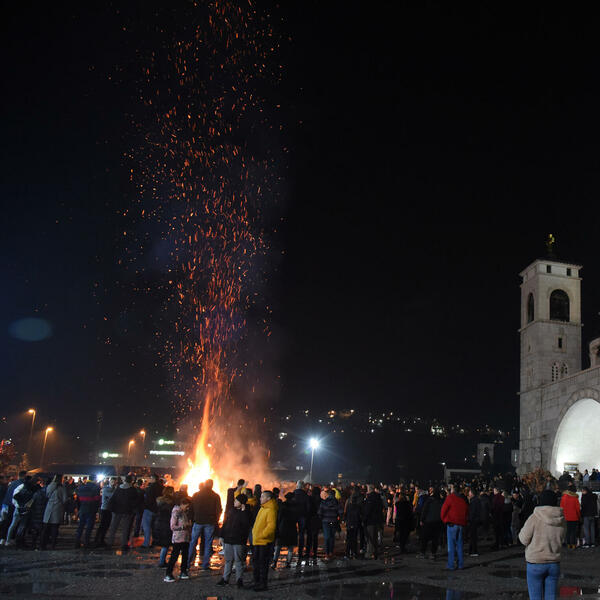 Pravoslavni vjernici danas tokom cijelog dana mogli su da prilažu badnjake ispred vjerskih objekata.