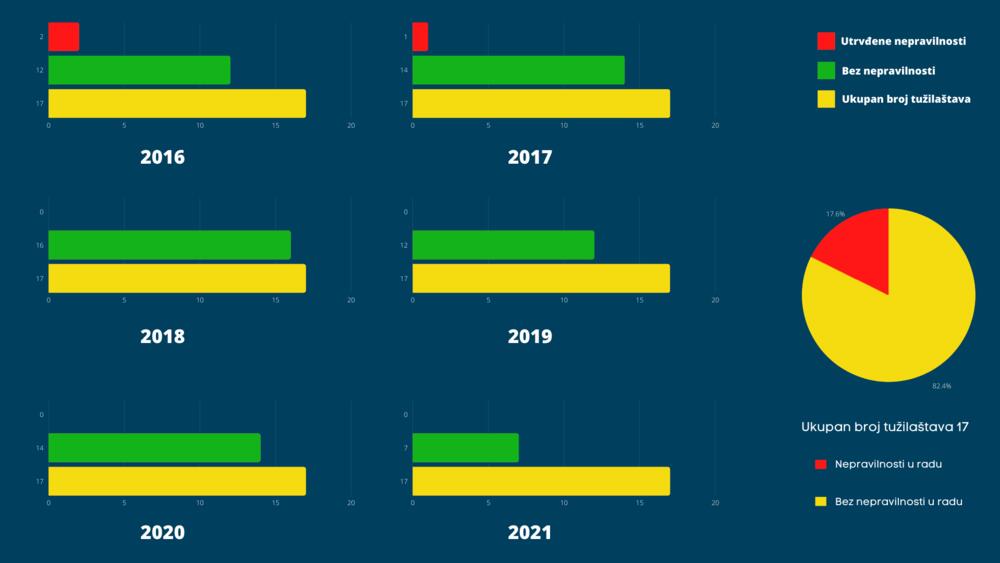 Od 75 izvršenih nadzora u svim crnogorskim tužilaštvima, u posljednjih šest godina, samo su u tri slučaja utvrđene nepravilnosti od strane pravosudnih inspektora Ministarstva pravde, ljudskih i manjinskih prava (MPLJMP). U posljednje četiri godine, u 49 nadzora, inspektori nijesu notirali nijednu grešku.