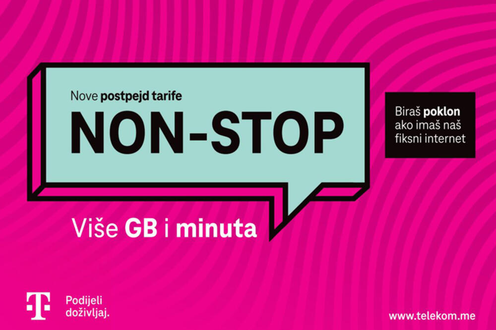Detaljan pregled Non-stop paketa – minuta, gigabajta i drugih benefita uključenih u novu tarifu – dostupan je na stranici https://telekom.me/privatni-korisnici/non-stop, a u Telekomu posebno izdvajaju Non-stop Max paket koji sada donosi 450 minuta ka drugim mrežama, neograničene pozive ka Telekom mreži i 10 GB za surfovanje u zemlji.