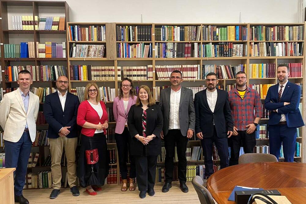 "Na sastanku je razgovarano o položaju FCJK u prosvjetnom sistemu Crne Gore, ostvarenim rezultatima ove ustanove na polju naučnoistraživačke djelatnosti i promociji montenegristike u Crnoj Gori i inostranstvu te proširenju saradnje FCJK i američkih akademskih institucija", piše u saopštenju.