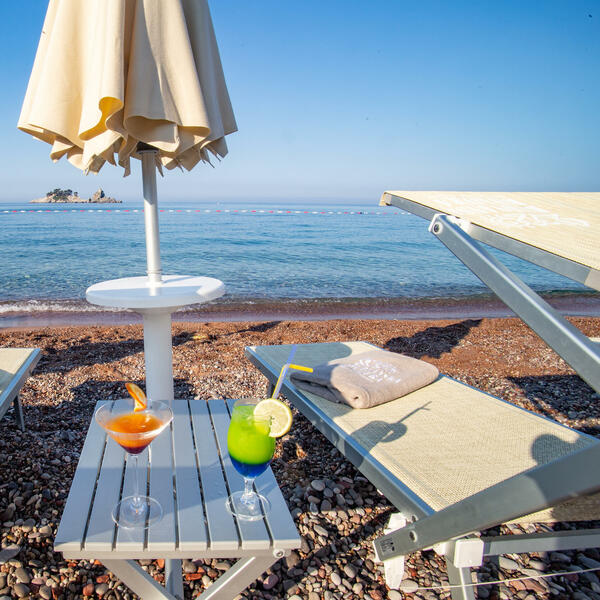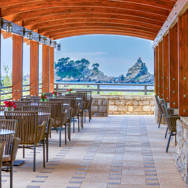 Hotel Palas je smješten u raskošnom zelenilu pomorandža i maslina, pa ćete na jedinstveni način doživeti primorje. Sa njegovih terasa pogled se pruža ka plaži, moru i ostrvima Katič i Sveta Neđelja, koja su od obale udaljena samo kilometar, pa ćete uživati u izlasku i zalasku sunca sa pogledom na Petrovac.