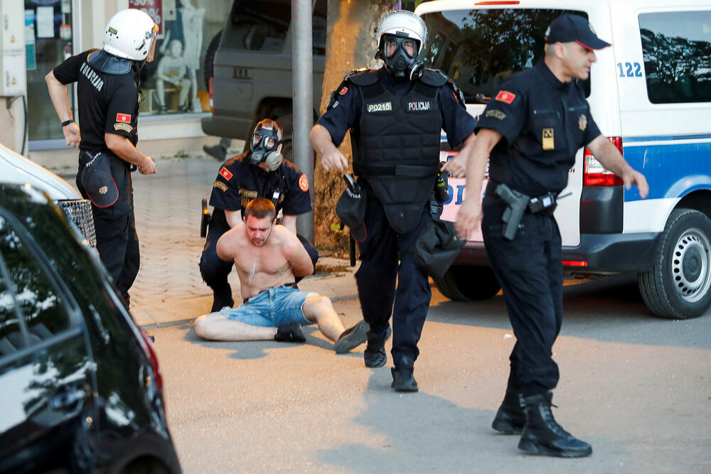 Građani su bacali flaše, stolice...a policija je upotrijebila suzavac i biber sprej, javlja reporter "Vijesti".