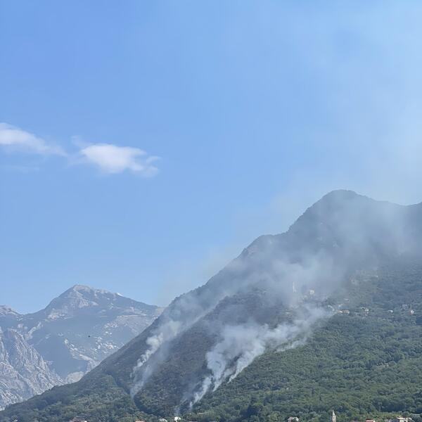Ranije danas Radio Kotor je javio da se vatra kreće prema vrhu brda, kao i da požar gasi kompletno ljudstvo i tehnika Službe zaštite i spašavanja Kotor.