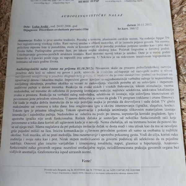 Dodaju da kako porodica Avdić živi samo od plate supruga koji radi privatno, Lukini roditelji nemaju sredstva koja su im potrebna za odlazak u Tursku, pa su se odlučili da se obrate javnosti kako bi im pomogli vjerujući u humanost dobrih ljudi.