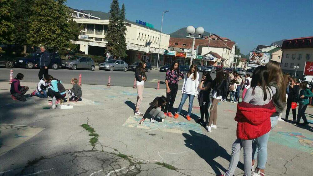 Blizu dvije stotine djece učestvovalo je danas na tradicionalnoj manifestaciji "Djeca slikaju na asfaltu", koja je u okviru Dječije nedjelje održana na platou ispred zgrade Opštine.